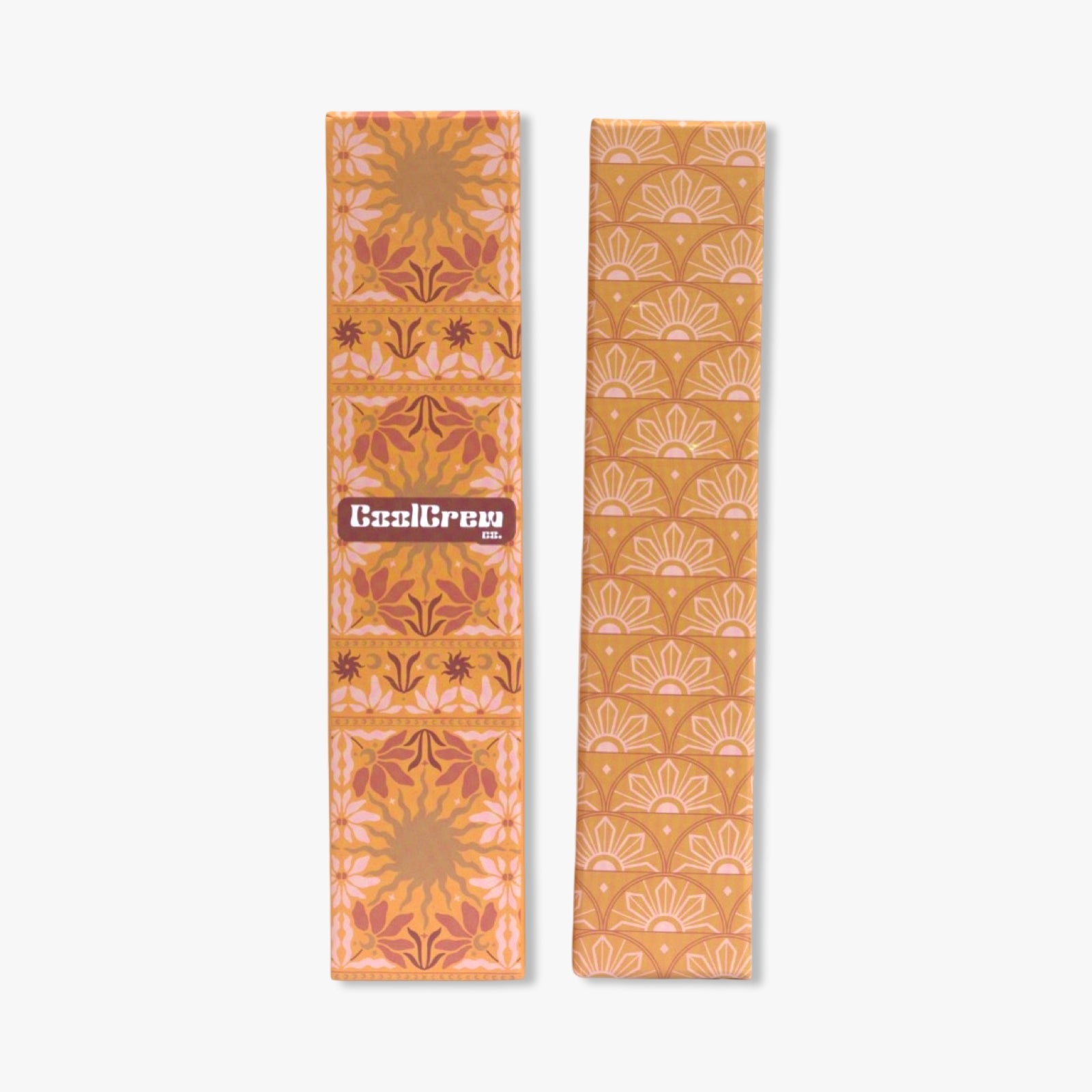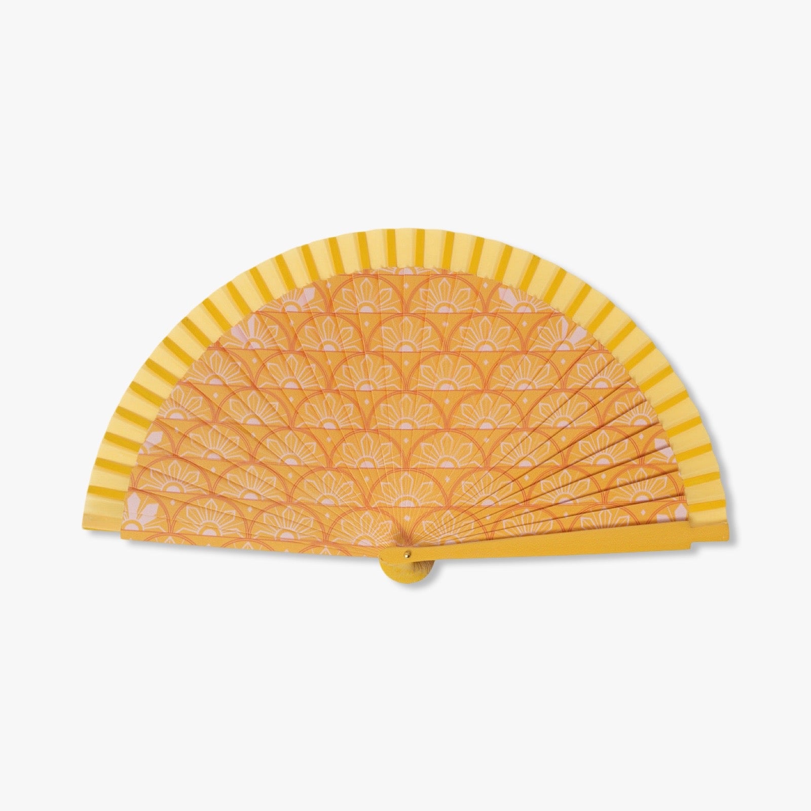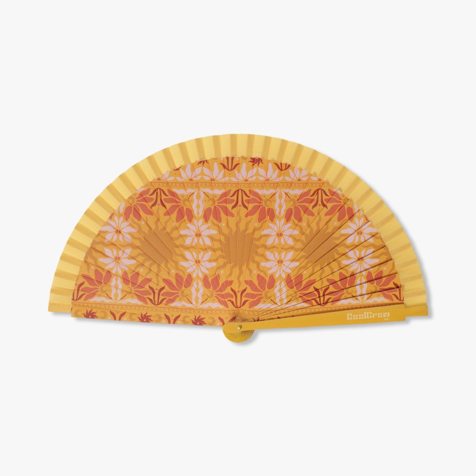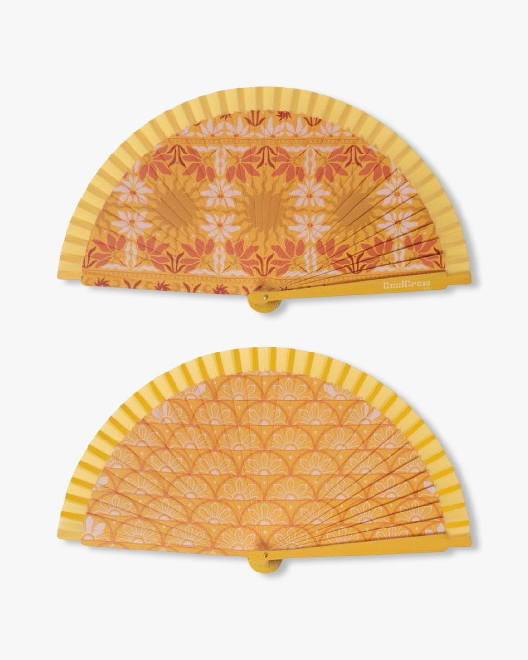 Sunspell casts a warm, gilded glow with every flick of the wrist. Bursting with sun-kissed florals, celestial symbols and a palette pulled straight from golden hour, this fan brings big boho energy in the most effortlessly chic way. The reverse features rising suns that radiate feel-good vibes and free-spirited charm.